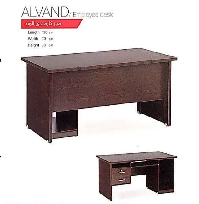 جنس ملامینه ابعاد: ۱۵۰×۷۰ ارتفاع ۷۸ نوار لبه کار Pvc دارای دو کشو